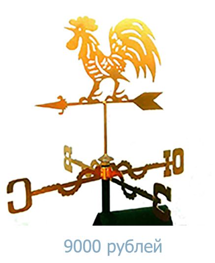Оригинальный подарок флюгеры ручной работы. В наличие и на заказ более 25 видов, в том числе петухи, лошади, драконы, кошки, собаки, корабли и др. Смотрите примеры работы в каталоге продукции. Возможно изготовление оригинального подарка по вашему рисунку.Флюгеры изготавливаются из двухмиллимитровой стали. Уникальная конструкция механизма вращения: поворотный узел на двух подшипниках плюс опорный шарик, который позволяет флюгеру вращаться даже при самом слабом ветре (не издает скрипа, не требует постоянной смазки). Защитно-декоративный конус защищает место врезки флюгера от попадания влаги. Надежное крепление на крышу делает ваш оригинальный подарок устойчивым даже в сильный ветер. Благодаря уникальности конструкции, наши флюгеры будут служить вам и вашим друзьям долгие-долгие годы.